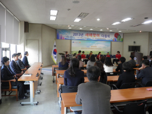 경상북도경주교육지원청(교육장 손수성)에서는 1월 2일 오전 10시30분 청내 전 직원을 대상으로 경주다운 경주교육실현을 위한 계사년 새해다짐식을 개최했다.