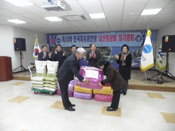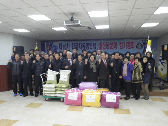김천시 한국자유총연맹 대신동분회(회장 : 임병국, 이옥혜)는 지난 2일 제10차 정기총회를 가진 자리에서 쌀 20kg 10포대, 겨울이불 10채(시가 1백만원상당)를 독거노인, 소녀소년가장 등 사회취약계층에게 전달했다.