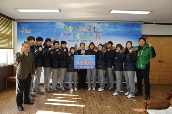 영천시청 태권도단은 1994년 결성된 남자팀을 시작으로 2010년 여자팀이 결성되어 현재 11명의 선수로 구성되어 각종 대회에서 우수한 성적을 거두며 영천의 태권도의 위상을 높이고 있다. 태권도단 창단부터 선수들과 함께 해온 윤종욱 감독은 “지역학생들을 위한 장학사업에 동참하고 싶어 선수들과 함께 십시일반 기금을 모았고 작년 우승 포상금을 보태 기탁하게 되었다. 지역 아이들이 자신의 재능을 펼칠 수 있는 교육 환경을 만들어 주기를 바란다.”며 소감을 말했다.