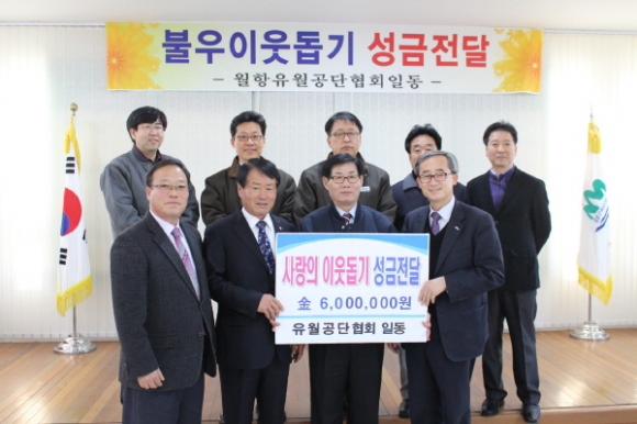 월항면 유월리에 위치한 ‘유월공단협회’(협회장 박세욱, ㈜SH)에서 성금 600만원을 쾌척해 한파가 몰아치는 ‘계사년’ 겨울에 따뜻한 시작을 알렸다. 월항면 유월리에 위치한 유월공단협회는 ㈜SH(대표 한세욱)을 비롯해 약 20여개의 공장이 있으며, 매년 불우이웃을 위해 쌀 후원 등의 작은 실천에서부터 성금기탁까지 나눔의 ‘크기’보다는 ‘의미’를 소중히 하는 산업단지로 그 훈훈함이 남다르다.