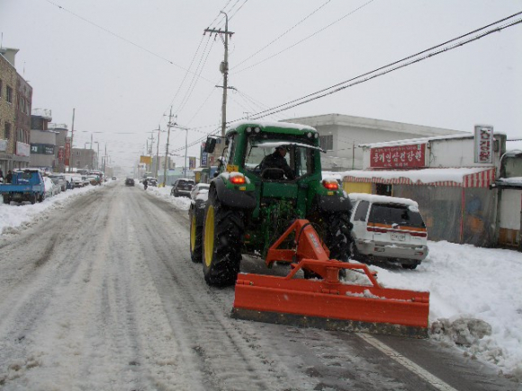 |  | | | ⓒ GBN 경북방송 | | 영주시보유 장비로는 주요 간선도로를 우선적으로 제설작업을 하고 읍면동 지역에 배부된 트렉터부착용 그레이더로 마을간 연결도로 및 읍면동의 이면도로는 제설작업을 하여 이 번에 지속적으로 내린 강설에도 신속한 제설작업에 크게 기여를 했다.