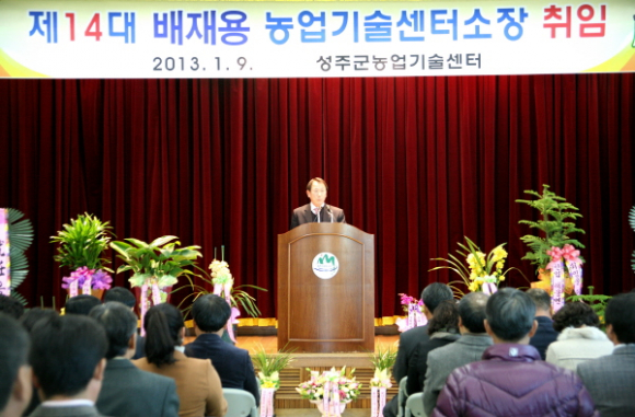 성주군농업기술센터에서는 학습조직체 및 직원 등 100여명이 참석한 가운데 1월 9일(수) 센터 대강당에서 제14대 소장에 배재용 전 농촌지도과장께서 취임했다.