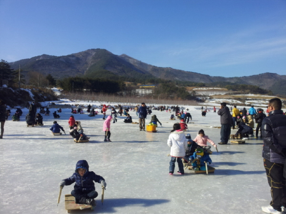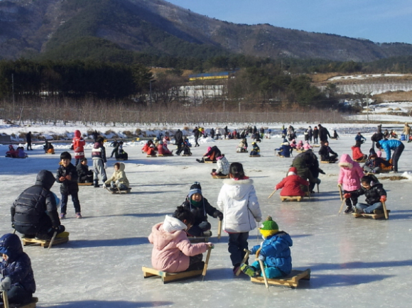 죽장 상옥 전통 얼음썰매 체험장이 지난 12월 25일 개장한 이래 방학을 맞이한 학생과 학부모 등 약 1만 여명이 찾아 6,000㎡의 얼음판이 성황을 이루고 있다.