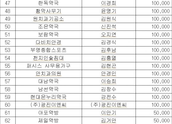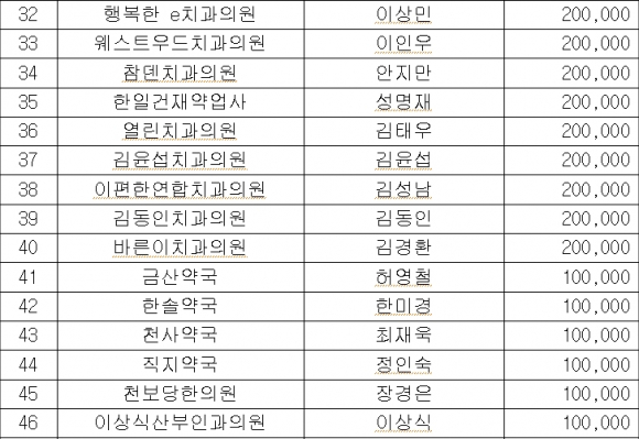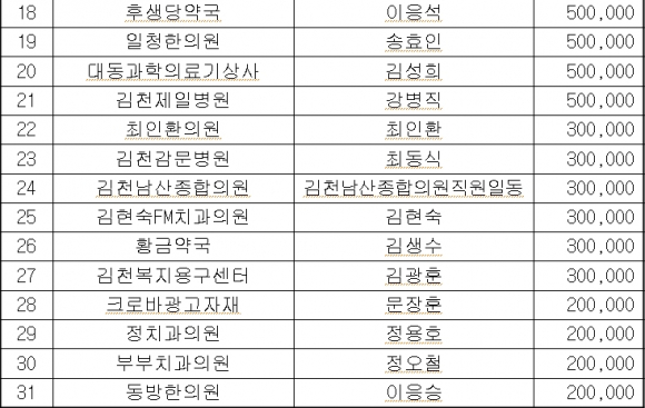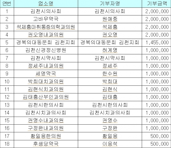 김천시 , 의약업소의 희망 2013 성금모금액 29,455천원