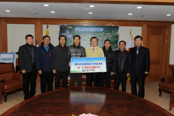 희망과 꿈을 노래하며 살아가는 김천사이버농업인의 선두주자인『꿈꾸는 농부들』(대표 이고훈)에서 지난 1월 10일 오전 김천시청을 방문해 김천시인재양성재단에 장학금 100백만원을 기탁했다.