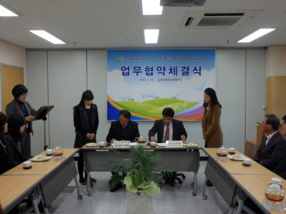 |  | | | ⓒ GBN 경북방송 | | 먼저 개회선언과 참석자소개, 협약서 낭독, 협약서 서명 및 교환, 양측대표이신 김천시종합사회복지관 여성새로일하기센터 박세천 관장님 과 동북 지방통계청 구미사무소 변동열 소장님의 인사말씀과 양기관 소개, 기념촬영순으로 진행되었다.