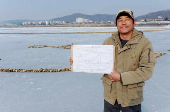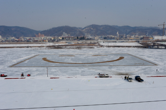 안동 반변천에 활짝 '웃음'권오준, 빙판 위 세계최대 '스마일' 제작