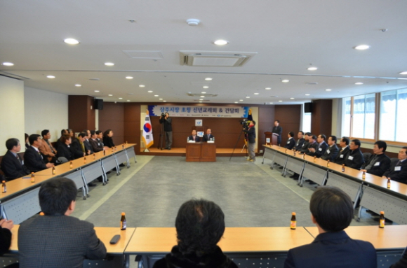 상주상공회의소(회장 신종운)에서는 지난 1월 16일 명실상감한우 홍보테마타운 2층 회의실에서 성백영 상주시장, 상주상의 회원사, 상주시 관계자들이 참석한 가운데 “상주시장 초청 신년교례회 & 간담회”를 개최했다.