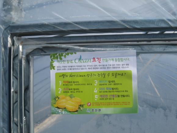 하우스 출입문에 부착된 스티커를 본 농민들은 “요즘은 식사시간을 제외한 나머지 일과를 참외모종 키우는 밭에서 거의 보내고 있다”며 자연스럽게 Clean 초전만들기에 대한 내용을 접하며 실천사항을 확인할 수 있어서 실시간 홍보효과는 물론 형식에 그치지 않고 찾아다니는 행정에 적극 협조해야 될 것 같다며 기발한 아이디어에 칭찬을 아끼지 않았다.