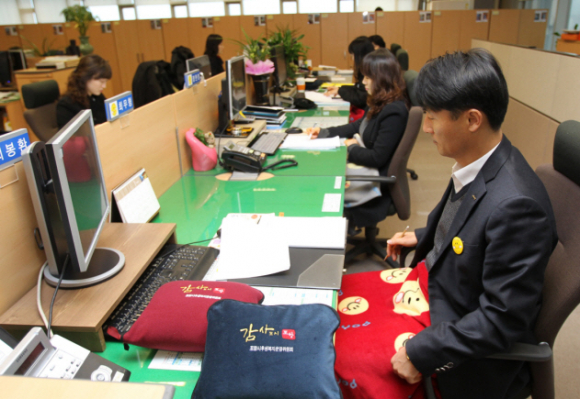 무릎담요는 사각형 커버에 담겨 있어 겨울철에는 담요로 사용하고, 그 밖의 계절에는 하루 종일 의자에 앉아 근무를 하는 직원들의 허리를 보호해 주는 쿠션으로도 사용할 수 있어 사계절 동안 활용 가능한 장점이 있다.
