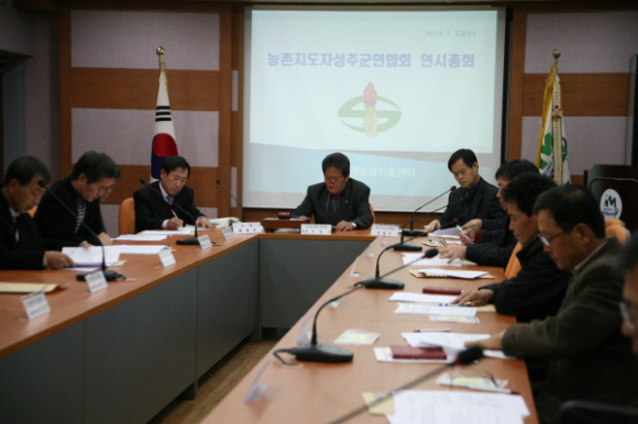 농촌지도자(회장 이영수)에서는 연시총회를 1월 23일(수) 농업기술센터 회의실에서 실시해 군임원 및 관계자 30여명이 참석한 가운데 2012년도 사업결산 및 2013년 사업계획을 수립 했다.