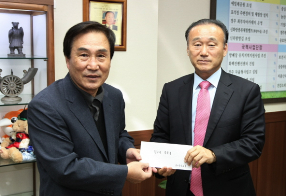 경주시 노서동 소재(시외버스종합터미널) (주)한일교통(회장:황대원)은 1월 22일 우리 경주지역의 훌륭한 인재양성을 위해 써 달라며 장학기금으로 일천만원(₩10,000,000원)을 경주시 장학회에 전달했다.