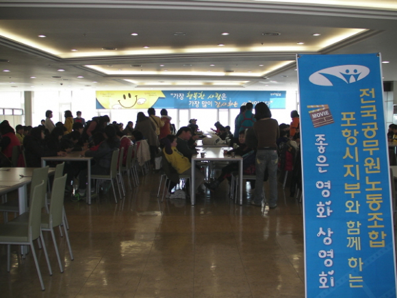 전국공무원노동조합 포항시지부(지부장 : 유욱재)에서는 1월 25일 지역아동센터 이용아동 200여명을 초청해“정준호의 사랑의 밥차”, 시의회, 주민복지과 희망복지지원단 등 관련부서와 함께 점심식사 제공, 시청사 및 의회견학, 영화관람 등의 프로그램을 실시했다.