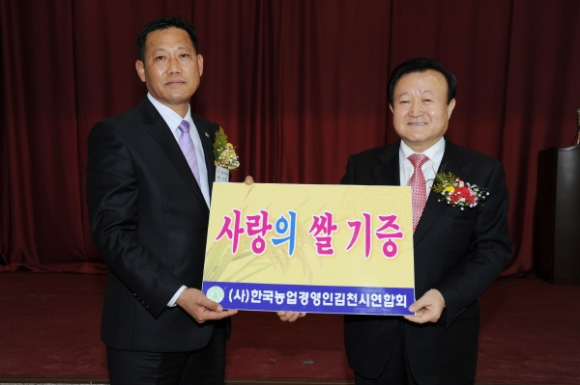 |  | | | ⓒ GBN 경북방송 | | 이날 취임식에서 박보생 김천시장은 “현재 농업이 수입개방화, 사료가격인상, 농산물가격 하락 등 어려운 현실에 처해있지만, 계사년을 맞이해 뱀이 허물을 벗듯 시대변화에 능동적으로 변화하자.”고 당부했다. 신임 이종필 회장도 시대적과제 수행에 어깨가 무겁다고 피력하고 농업인들의 권익향상과 농업경쟁력을 확보하는데 힘쓰고 농업인과 행정이 함께 힘을 모아 슬기롭게 대처할 것이라고 말했다. 특히 이 회장은 축하 물품으로 들어온 쌀(400㎏)과 사과즙(30박스)을 지역의 어려운 가정에 전달해 달라고 박보생 김천시장에게 전달했다.