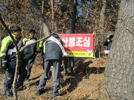 |  | | | ⓒ GBN 경북방송 | | 이날 캠페인에 참가한 소방공무원 및 의용소방대원들은 산불조심 홍보 전단지를 배부하고, 산 인접지역에 산불조심 플래카드를 설치했다. 소방서 관계자는 “겨울철은 건조한 날씨로 인해 산불발생 위험이 높은 만큼 등산객이나 시민들의 부주의로 인한 화재가 발생하지 않도록 주의해 줄 것”을 당부했다.