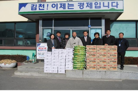 김천시 봉산면 용화사(주지 적인스님, 신도회장 반야성)는 설 명절을 앞두고 생활이 어려운 저소득층 가정에 전달해 달라며 백미 10포/10㎏와 라면 12박스, 떡국 떡 30박스(100만원 상당)를 봉산면사무소에 기탁했다. 기탁된 성품은 관내의 독거노인, 조손가정, 장애인 가구 등에 전달한다.