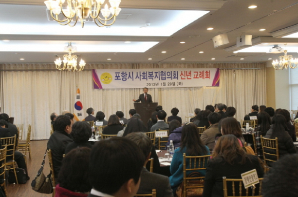 포항시 사회복지협의회는 29일 UA컨벤션에서 포항시 복지정책의 방향과 과제에 관해 논의하고 대안점을 찾아 미래지향적인 포항의 복지 비전을 수립하고자 신년교례회를 개최했다.