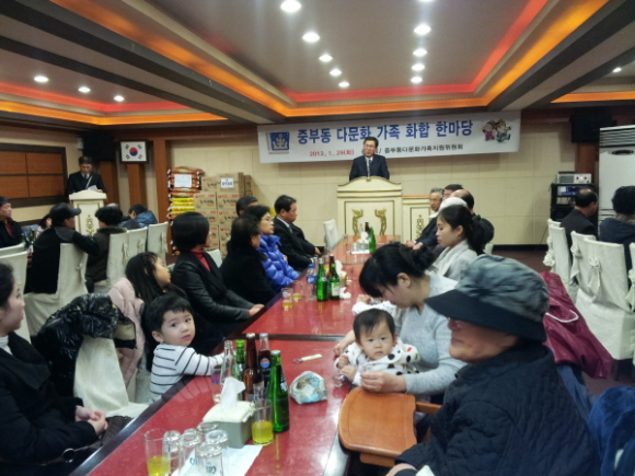 이 자리를 통해 결혼이주여성은 물론 남편과 시부모, 아이들까지 모두 참석해 맛있는 저녁 식사를 하면서 가족의 친밀도를 높이는 계기는 물론, 설을 맞아 다문화가족끼리 덕담을 나누며 좋은 이웃이 될 수 있는 소중한 시간을 가졌다. 박석진 중부동장은 이 행사를 마련한 다문화가족지원위원회와 도움을 주신 모든 분께 감사의 인사를 전하고 “이 행사가 해마다 발전을 거듭해서 다문화가족과 지역사회를 화합으로 이끄는 기폭제가 되어 주기를 기대하며, 다문화가족에 대한 사회인식 개선과 행정적 지원에 더욱 힘쓰겠다.”고 했다.