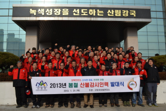 구미국유림관리소는 31일 관리소 대회의실에서 산림보호감시원, 산불전문예방진화대원 등 100여명이 참석한 가운데 ‘산불방지발대식’을 갖고 본격적인 산불예방활동을 시작한다고 밝혔다.