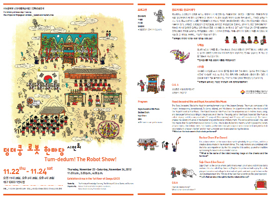 지식경제부와 문화체육관광부가 주최하고 경상북도문화콘텐츠진흥원(이하 진흥원)과 (재)전통공연예술진흥재단이 공동으로 주관하는 ‘궁중연례재현 로봇공연’이 경상북도 소재 초등학교 10개교에서 22회의 공연이 진행될 예정이다.