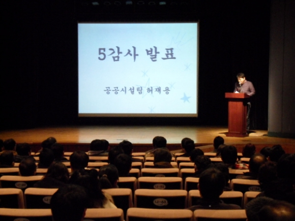 포항시시설관리공단(이사장 김완용)은 최근 포항시에서 역점으로 추진하고 있는 감사운동과 QSS 운동에 적극 동참하고자 2월 월초조회에서 감사발표 및 QSS교육을 실시했다. 공단은 지난 1월 감사워크숍을 다녀온 후, 감사에 대한 소중함을 계속 새기고자 매월 초 조회 때마다 직원 1명이 5감사발표를 하기로 했다. 이날 5감사 발표는 공공시설팀 허재용 직원이 함께 일하는 동료들과 가족, 사랑하는 연인에 대한 감사를 발표해 직원 모두 함께하는 주변 지인들에 대해 감사하는 마음을 되짚어 보는 시간을 가졌다. 5감사 발표 후 이어진 특강에서도 직원들은 열의를 다하는 모습을 보여주었다. QSS(Quick Six Sigma)는 불합리 불필요한 낭비를 개선하여 가치 있게 일 잘하는 문화를 만들기 위해 시작된 활동으로, 포항시시설관리공단에서는 설립 초반 포스코 벤치마킹 등 다양한 방법으로 QSS활동에 대한 깊은 관심을 보인 바 있다.