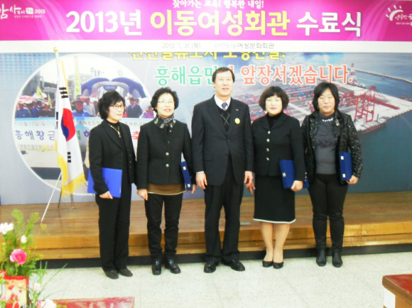 포항시 여성문화회관은 지난달 31일 흥해읍사무소 회의실에서 여성문화회관 이용이 어려운 원거리 지역여성들을 위한 ‘흥해읍 이동여성회관’ 수료식을 가졌다. 이번 이동여성회관은 흥해읍 여성 80여 명을 대상으로 지난해 12월 11일부터 1월 31일까지 8주 16회에 걸쳐 매주 화․목요일 심장병 및 성인병 예방법, 알뜰한 재테크 등 16개과정의 다양한 강의로 운영됐다.