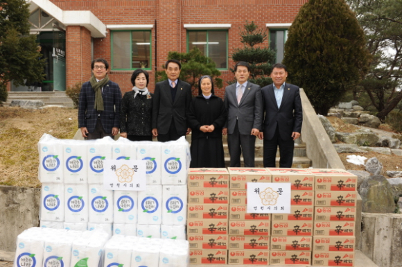 영천시의회(의장 김태옥)의원들은 민족 고유의 명절인 설을 앞두고 2월 5일 영천시 관내에 소재한 사회복지시설을 방문하여 위문품을 전달하고 시설 수용자 및 관계자를 위로 격려하는 등 따뜻하고 정감 넘치는 의정활동을 펼쳐 훈훈한 명절 분위기를 조성했다. 이날 위문은 명절이 되면 더욱 가족의 그리움과 이웃의 보살핌의 손길이 필요한 나자렛집, 영천희망원, 마야요양원 등의 시설을 방문하여 준비해 간 라면 50박스와 휴지 50박스 등을 전달하고 잠시나마 가족애를 느낄 수 있는 시간을 가짐과 아울러 푸근한 설 명절을 보낼 수 있도록 시설 관계자분들에게 당부의 말씀도 잊지 않았다. 한편, 영천시의회에서는 세계적인 경기침제로 인한 국내경기 부진으로 최근 사회적으로 소외되고 있는 어려운 이웃들이 점차 늘어나고 있는 현실을 조금이나마 함께하고자 시민의 대의기관인 영천시의회가 앞장서서 복지시설을 위문하게 되었으며, 이들의 어려움을 직접 듣고 함께 고민하고 해소방안 강구를 위해 노력할 것을 다짐했다. 그리고 영천시의회 김태옥 의장은 “매년 민족 고유의 명절인 설날과 추석에 복지시설을 위문하는 일이 일회성으로 거치는 것 같아 아쉬움을 나타내고 앞으로는 자주 어려운 분들과 함께하고 그 분들의 의견을 들을 수 있는 기회를 가질 수 있도록 노력하겠다”는 말과 함께 시민 모두가 다소 어려움이 있지만 이럴 때 일수록 어려운 이웃과 함께 나눔을 실천하는 훈훈한 설 분위기가 조성되기를 희망했다.
