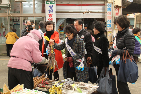 예천군은 6일 오전 11시 30분부터 예천읍상설시장과 중앙시장에서 전통시장을 활성화하고 상인들을 격려하기 위해"전통시장 방문 및 전통시장 살리기 캠페인"행사를 개최했다. 이날 이현준 군수를 비롯해 권점숙 군의장과 군의원, 동본1리 부녀회 및 여성단체회원 등 50여명은 예천읍상설시장과 중앙시장을 방문해 설맞이 장보기에 참여했다. 특히, 지난달 30일 군에서 구매한 ‘전통시장 온누리 상품권’ 으로 제수용품을 구매했으며 참여 여성단체 회원들은 군에서 추진하는 전통시장 활성화 분위기 조성에 동참하게 되어 뿌듯하다고 말했다. 이현준 군수는 인근 지역의 대형 마트 증가 및 전자상거래 활성화 등으로 소비 패턴이 변화되어 지역 경기가 점차 위축되고 있으며 지역 상인들은 어려운 여건으로 힘겨운 경쟁을 하고 있는 지금, 군민들이‘나부터 참여하는’ 사고 의식은 지역 경제 활성화에 도화선이 될 수 있으니 전통시장에서 제수용품을 구매해 줄 것을 당부했다.