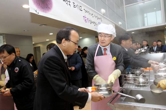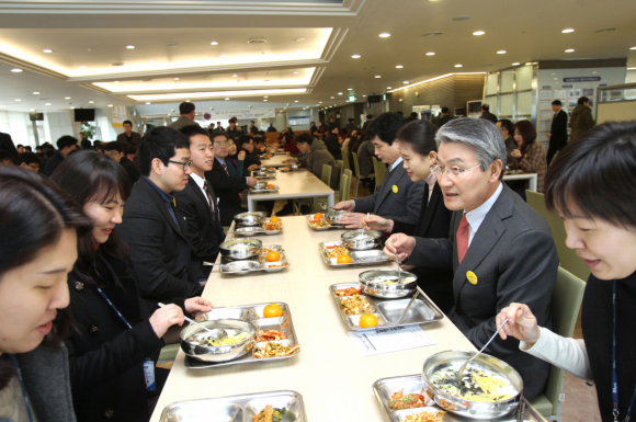 박승호 포항시장, 손수 떡국배식에 이어 신규직원들과 새해 덕담 나눠