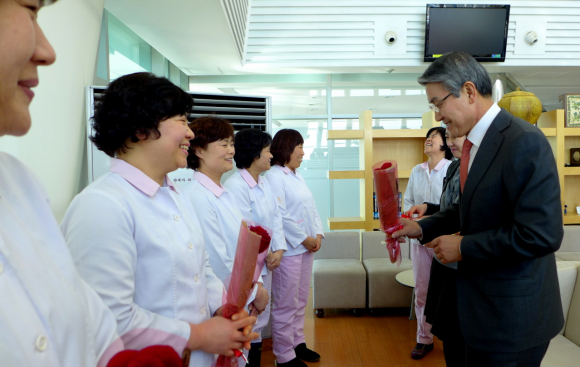 박승호 포항시장, 구내식당 조리사에게 감사 장미꽃 전달, 답례는 하트커피