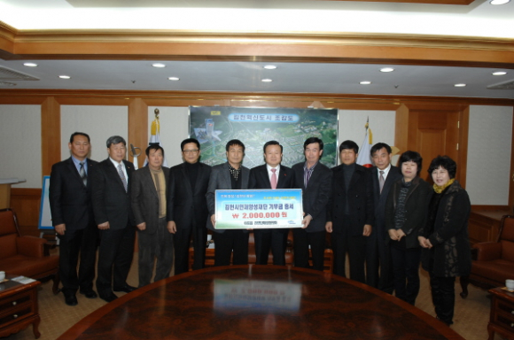 김천시 아포읍(읍장 이상배) 관변단체장협의회는 13일 김천시청 2층 접견실에서 우수한 인재양성을 위해 써달라며 김천시 인재양성재단(이사장 박보생)에 장학금 200만원을 기부했다.