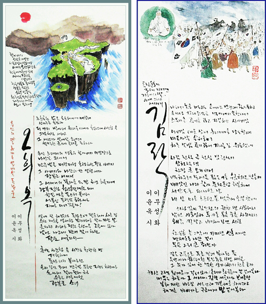 대담 내내 이번 시화전의 주인공인 이윤옥 시인과 이무성 화백의 뜨거운 나라사랑 정신을 엿볼 수 있었다. 인물 하나하나의 이미지를 살려 시를 쓰고 또 거기에 그림을 그린다는 것이 어디 쉬운 일일까 싶었다. 이 두 예술가는 대담을 마치고 일어서는 기자에게 “구국의 일념으로 목숨을 독립운동에 바친 분들이야 말로 오늘 우리 역사의 주인공이 되는 나라” 이길 간절히 바란다고 입을 모았다.