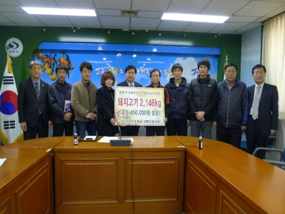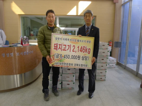 (사)대한한돈협회(경북도협의회)에서는 2월 20일 상주시 관내 사회복지시설에 도움을 주고자 돼지고기 2,146kg(645만원 상당)을 전달했다.