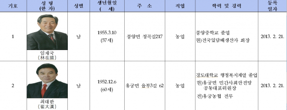 기호추첨결과로는 기호1번에 임재국 후보(57세), 기호2번에 최대한 후보(60세), 기호3번에 김재기 후보(55세)로 결정되었음.