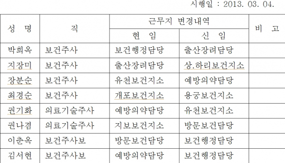 예천군 보건소 인사이동