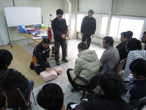 경주소방서 안강119안전센터(센터장 이규식)는 주택화재 예방 및 저감대책의 일환으로 26일 부민양행(경주시 안강읍 갑산리 소재)에서 외국인 근로자 18명을 대상으로 소방안전교육을 실시했다. 이번 교육은 지난 3일 경기도 화성 금형부품 공장에서 베트남 근로자 2명이 연기에 질식돼 사망한 화재를 계기로 실시되었으며, 외국인 근로자들이 언어소통 등의 문제로 화재 및 구조․구급 상황 발생시 신속한 신고와 대처능력이 부족해 피해가 커지는 것을 예방하고자 실시하게 됐다. 이날 교육은 화재시 대피요령 및 소화기 등 기초소방시설 사용방법, 심폐소생술 등 응급처치 교육 순으로 진행됐으며, 경주소방서에서는 외국인 및 다문화 가정을 대상으로 지속적인 소방안전교육을 실시하고 있다. 소방서 관계자는 “영세 산업체에 종사하는 외국인 근로자의 경우 낮은 소득수준과 열악한 거주・취사환경 등의 원인으로 위험성 상존하는 만큼 이번 교육을 통해 외국인 근로자들이 화재 등 비상상황에서 대처하는 능력을 키우는데 도움이 되길 바란다.”고 말했다.