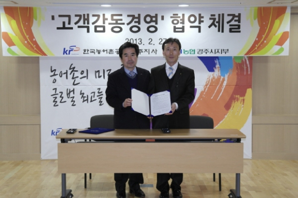 한국농어촌공사 경주지사(지사장 이진상)와 농협은행 경주시지부(지부장 김일곤)는 27일 한국농어촌공사 회의실에서 고객감동경영 업무협약을 체결했다.