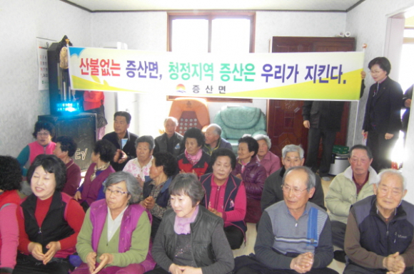 증산면에서는 지난 1월 중순경부터 이장, 새마을지도자, 작목반장․총무 등 마을대표 60명을 대상으로 산불예방교육을 시작하여 지난 20일부터 관내 16개소 경로당과 마을회관에서 주민들에게 순회교육을 실시했다.