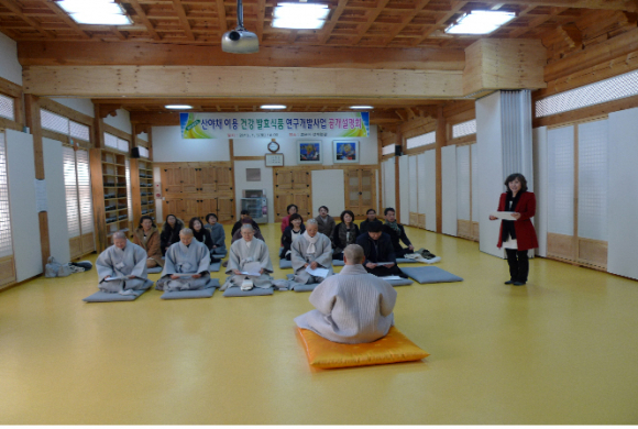 구체적으로 추진하는 “사찰음식연구개발”은 일반 대중인들의 이용성 증진을 위해 “산야채 이용 건강 발효식품 연구개발 사업”명목으로 실용성 연구과제를 자유공모를 통해 3과제를 최종 선정해 금년말 까지 추진하기로 했다. 금번 선정된 연구과제의 내용을 살펴보면 첫 번째, “시금장과 청국장을 이용한 발효식품 개발” (연구책임자: 지견스님) 이 과제는 단백질의 공급원이자 생체조절기능(소화촉진효과, 당뇨억제효과 등)이있는 청국장과 전통 시금장을 제조공정과 품질 표준화하고, 시금장과 청국장을 혼합한 2차 발효식품의 다양한(Paste형 및 파우더형)형태의 제품을 개발하여 일반 소비자에게 건강식품, 다이어트 식품을 공급하는 것이 연구목표이다