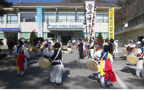 김천시 증산면(면장 김진하)는 27일 정월대보름을 맞아 김진하 증산면장, 오연택, 이호근 시의원, 오용주 이장협의회장, 김기봉 체육회장 등이 참석한 가운데 증산면사무소에서 윷놀이, 지신밟기 등 주민화합행사를 개최했다.