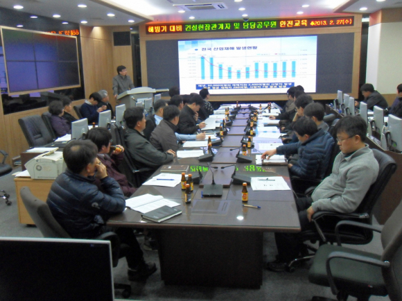 이날 교육은 한국산업안전보건공단 경북동부지도원 김대용 과장이 ‘해빙기 건설현장 안전보건 가이드라인’이라는 주제로, 건설현장 산업재해 발생현황, 기상예보, 해빙기 위험요인별 안전대책 및 점검방법, 해빙기 안전사고 사례분석 등을 교육했다.