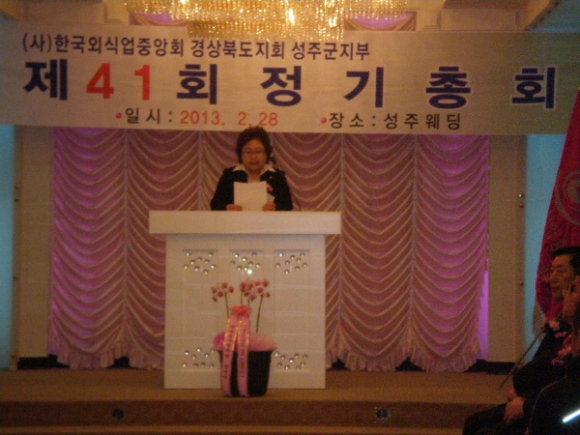 외식업성주군지부(지부장 박후분)에서는 2월 28일 15:00 성주웨딩에서 제41회 외식업성주군지부 총회를 개최했다.