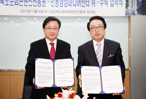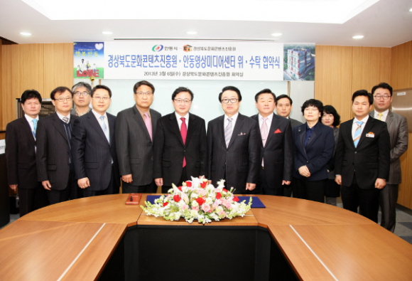안동시(시장 권영세)는 지역 문화콘텐츠산업 육성과 영상문화 저변확대를 위해 건립한 경상북도문화콘텐츠진흥원와 안동영상미디어센터의 효율적 관리운영을 위해 3월 6일 재)경북문화콘텐츠진흥원(원장 김준한)과 관리위탁 협약식을 가졌다.