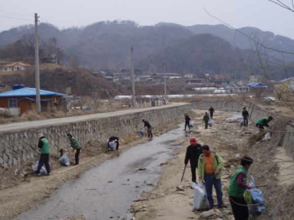 |  | | | ⓒ GBN 경북방송 | | 오후에는 우리가 직접 행동으로 보여주자는 의견에 따라 겨우내 얼어붙었던 광산1,2,3리 들판과 소하천에 녹아, 얼어 한데 엉겨있던 영농폐비닐, 부직포, 생활쓰레기 등 환경정화활동을 펼쳐 겨울철 동면하고 있던 개구리들의 잠을 깨우는 힘찬 발걸음이 시작되었다.