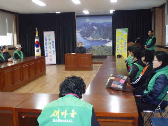오전10시 새마을 지도자들이 마을마다 모아둔 농약빈병을 가지고 왔으며 면사무소에서 2013년 청정 금수만들기 결의대회와 회의를 개최, 올해의 클린 추진방향과 우리들이 해야 할 일 등에 대한 다양한 토론이 이어졌고, 특히 농약병과 영농폐비닐은 농촌지역을 오염시키는 주범으로 반드시 효율적인 수거대책이 있어야 된다는 의견들이 있었다. 이에 새마을지도자협의회와 부녀회가 선도적으로 앞장서서 수거할 것을 다짐했으며,