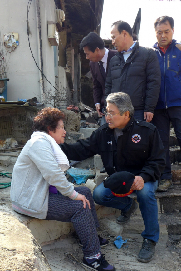 박 위원장은 “현장에 와 보니 생각보다 포항시가 초기대응을 잘했고 그나마 도심지로의 피해확산을 줄일 수 있었던 것 같다”며 "현실적으로 보상이 어려운 피해는 당에 보고해 국회 입법과정을 통해 적극적으로 지원해 주겠다"고 약속했다. 한편 박 위원장 일행은 이날 피해상황을 보고받은 뒤 용흥동 우미골과 학산동 주택피해 현장을 살펴보았으며, 주택피해로 임시 수용으로 이재민들이 모여 있는 학산경로당을 방문해 주민들과 함께 중앙동 항도초등학교 뒤편 피해지역을 둘러보고 주민들과 애로사항을 듣고 위로하였으며, 성금 1백만원을 박승호 시장에게 기탁했다. 한편 박승호 포항시장은 12일 산불피해현장을 찾은 새누리당 재해대책위원회 (위원장 박덕흠)에 산불피해현황 보고에 이어 현재 법적인 장치로는 산불과 같은 자연재해가 아닌 인위재해에 대해서는 명백한 지원기준이 없어 조례제정 빛 피해보상에 애로가 있다며 이 같이 강력히 주문했다.