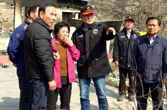 박덕흠 새누리당 재해대책위원장(충북 보은,옥천,영동)을 비롯한 위원들은 12일 대규모 산불피해를 본 경북 포항시를 방문, 산불피해 현장을 둘러보고 복구에 최선을 다해줄 것을 포항시 관계자들에게 당부했다.
