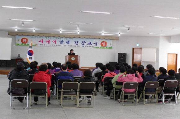 상주시보건소에서는 3월 12일 의회청사 3층 강당에서 60대이상 어르신 50명을 대상으로 한『시니어클럽 건강교실』개강식을 가졌다