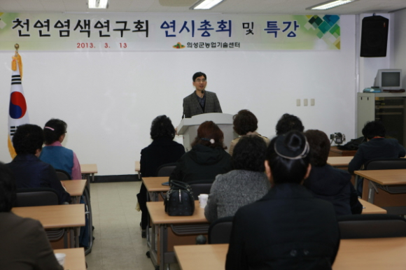 의성군(군수 김복규)은 3월 13일(수) 농업기술센터에서 천연염색과 건강이라는 제목으로 천연염색연구회 회원 38명을 대상으로 교육을 실시했다.