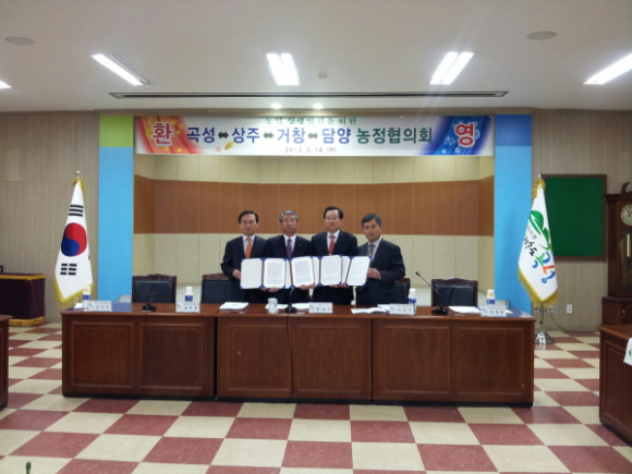 상주시에서는 3월 14일 곡성군청 통마당에서 상주시-곡성군-거창군-담양군 농업기술센터소장 등 관계공무원 29명이 참석한 가운데 농정협의를 위한 교류협약식을 가졌다.